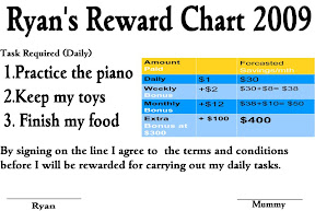 This year I start on a new reward chart for Ryan. We are using monetary rewards this time as I want to incorporate the value of money and how important it is to earn his own keep.