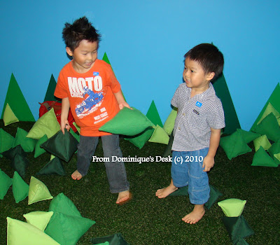 The light and dark green beanbags were to represent the grass growing in the garden where Walter rabbit lived. I don’t think the boys were able to make the association between the beanbags as they were too preoccupied tossing and throwing the different beanbags at all the kids who were in that room with them.